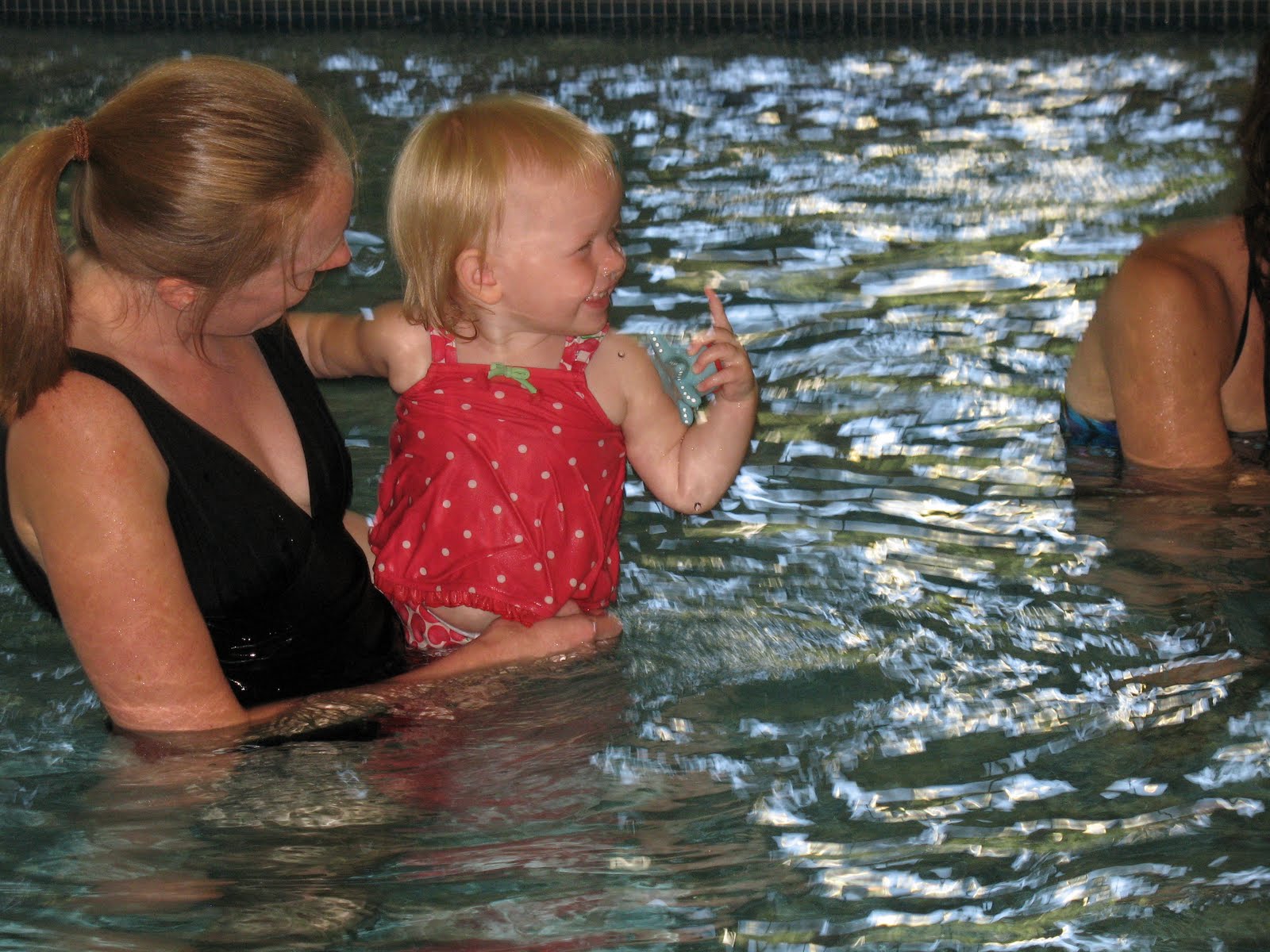 Sophia and I have been taking a Mommy and Me swim class at the Plainfield Parks and Rec Center with our friends Libby and Maeve. We have had a blast! It has been so awesome to see Sophia's LOVE of the water grow with each lesson. She LOVES floating on her back while I sing "Twinkle, Twinkle Little Star" in her ear. She is mastering the concept of kicking while on her back. Of course my child LOVES to kick and splash the teacher in the face with the water! We have 1 week's worth of lessons left and I am sad to see them over! It gives us something to do each Tuesday and Thursday morning PLUS makes her exhausted = excellent afternoon nap!!